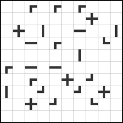 Эта головоломка представляет собой прямоугольную сетку, некоторые из ячеек которой содержат части линий.